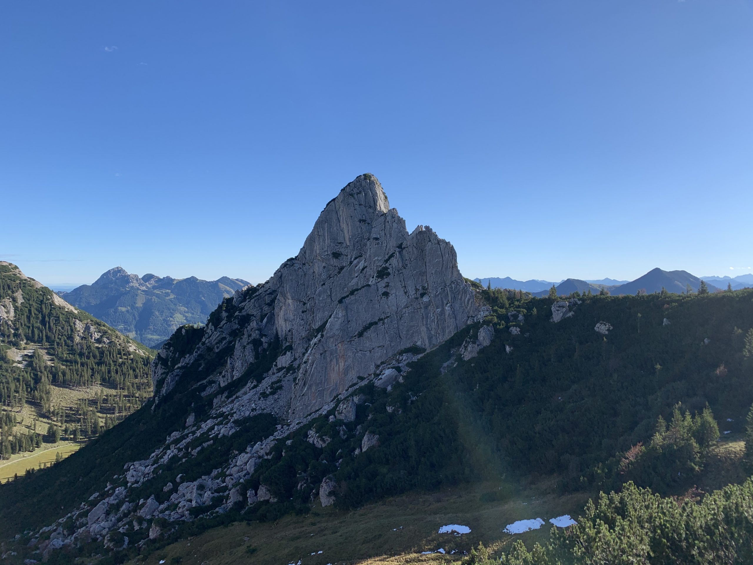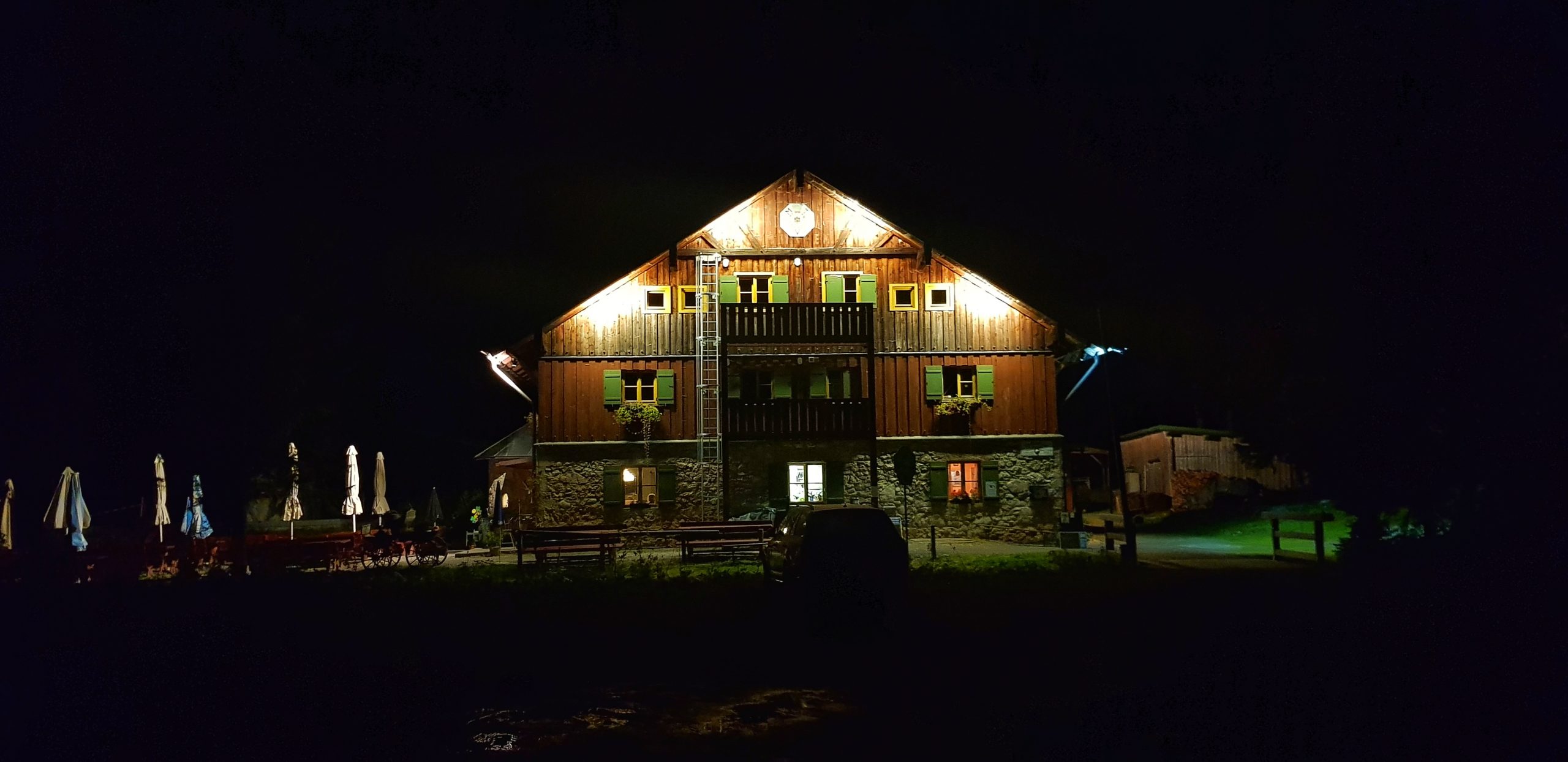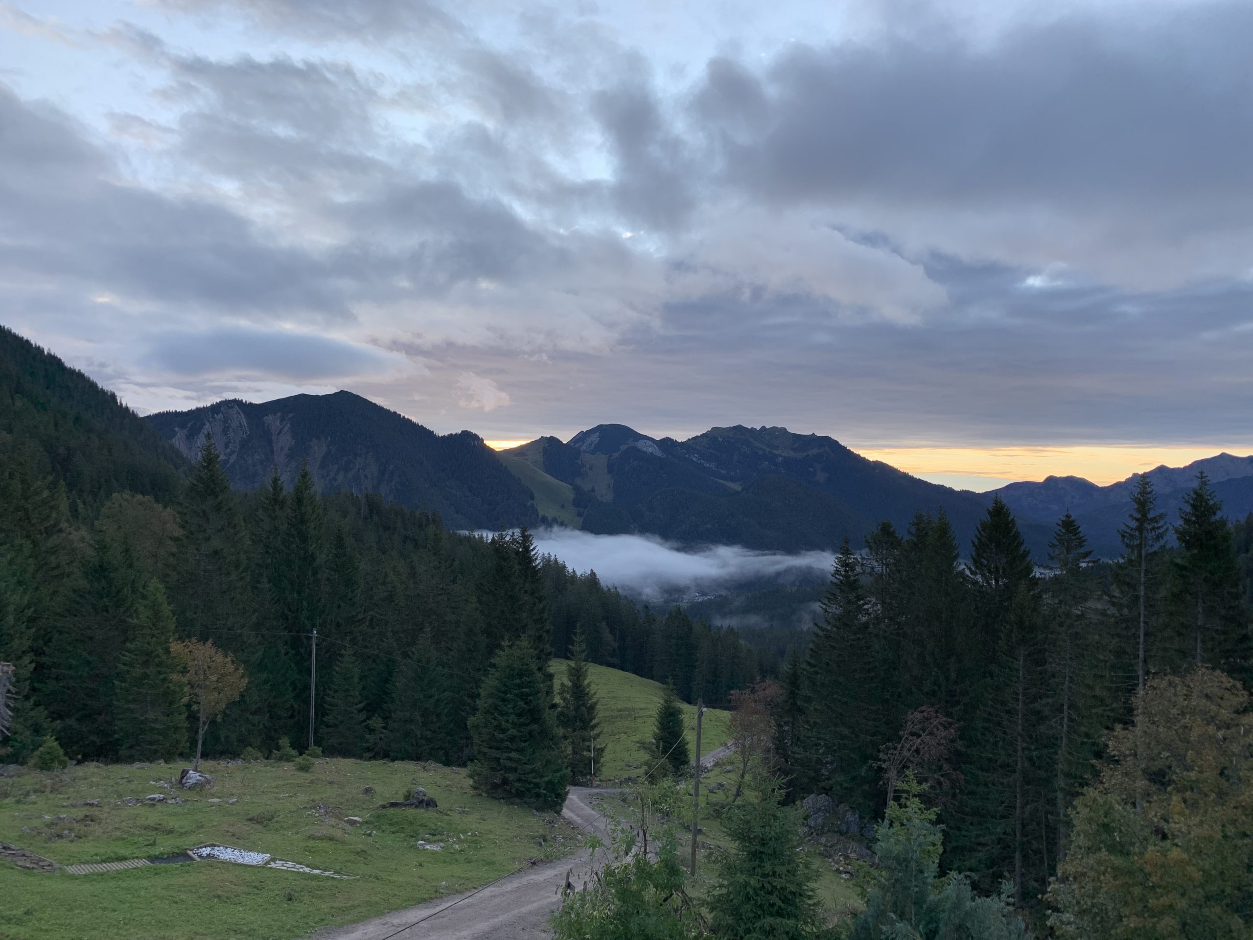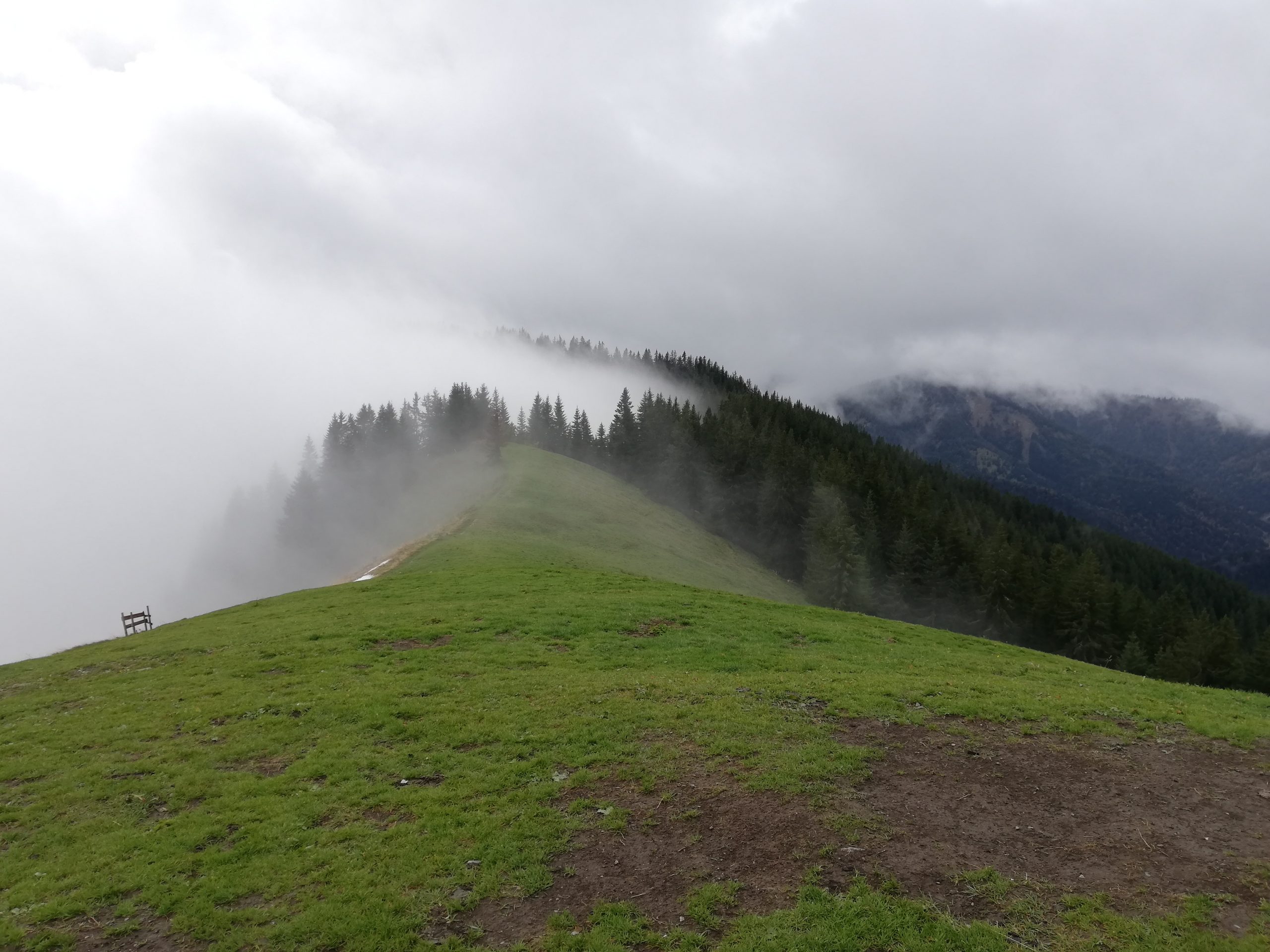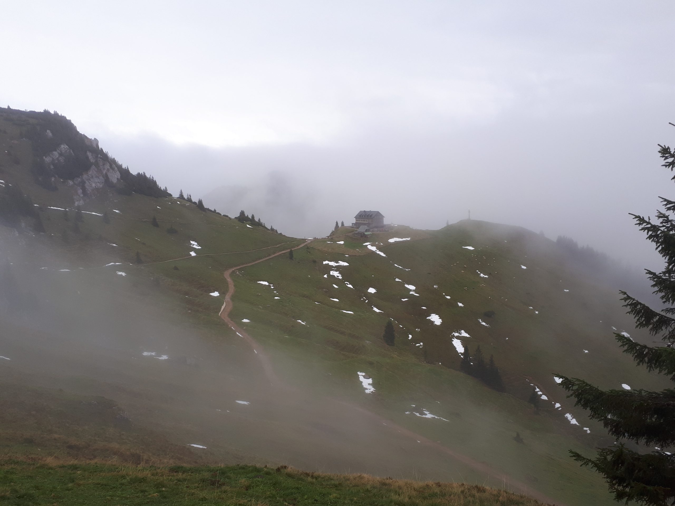 Der dritte Tag startet mit ein wenig Nieselregen, also lassen wir uns nach dem Frühstück auf dem Blecksteinhaus noch etwas Zeit, bevor wir uns die Regenklamotten überwerfen und unsere Tour starten. Wir gehen über die Grünseealm (1378 m) zum Roßkopf (1580 m), wo der Nieselregen bereits etwas nachlässt. Im weiteren Verlauf kommen wir über den Stümpfling (1506 m) und zum Aussichtspunkt am Suttenstein (1398 m), bevor wir an unserem Tagesziel für den dritten Tag, der Oberen Firstalm (1369 m) für eine ausgiebige Mittagspause ankommen.