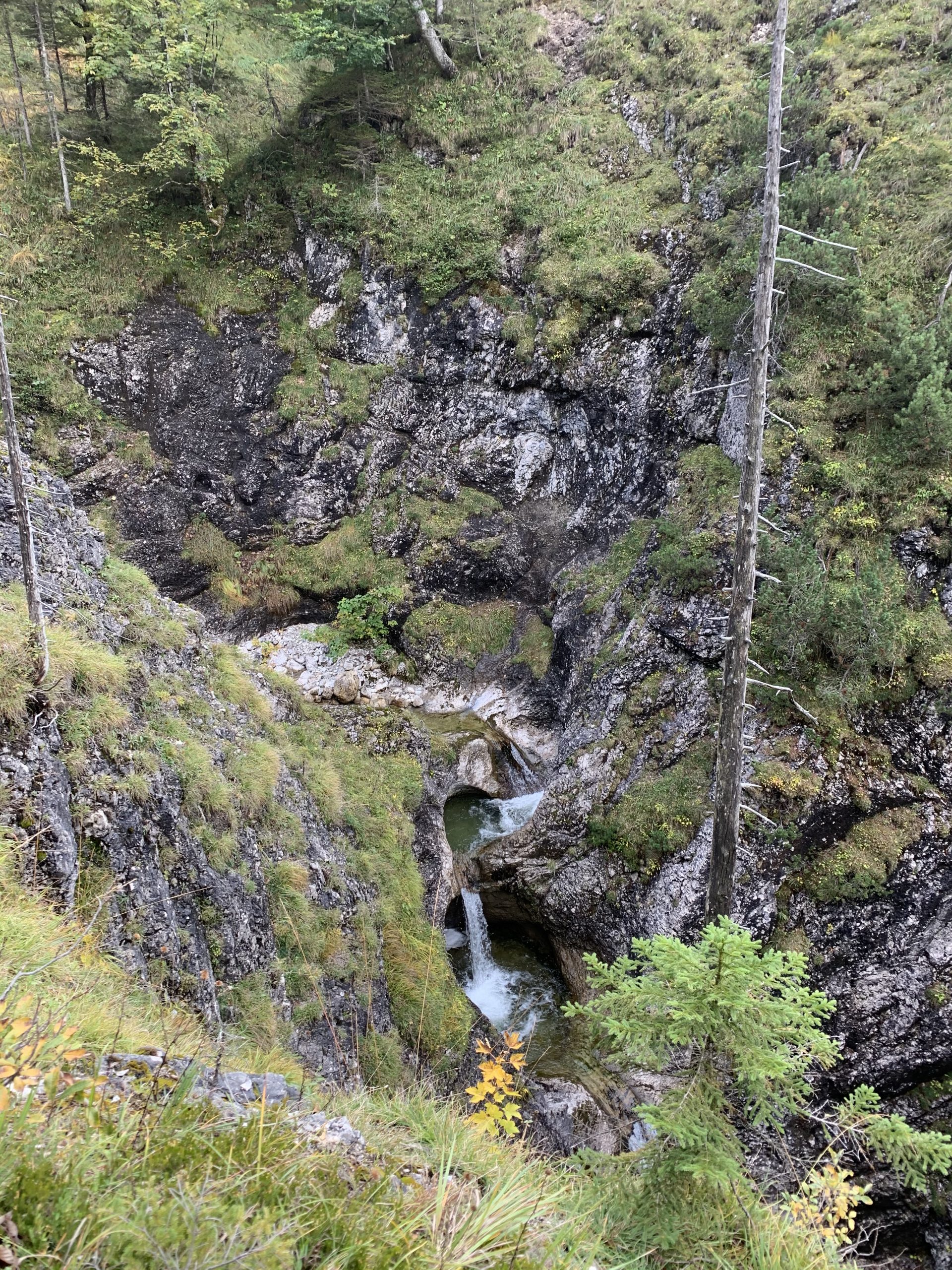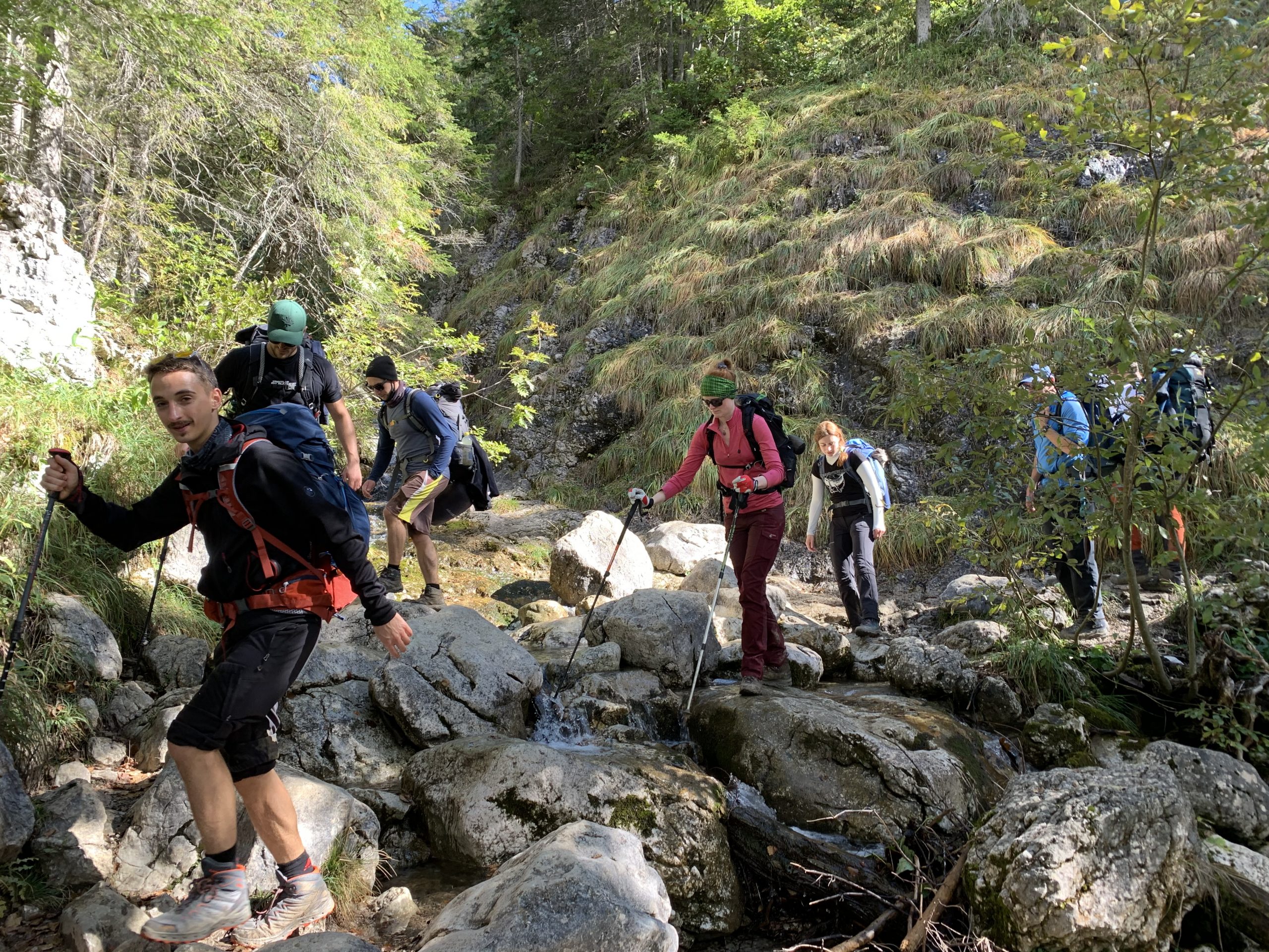 Der heutige Tag führt uns am Morgen weiter auf die Auerspitz (1810 m), wo wir die erste aussichtsreiche Rast einlegen. Der weitere Abstieg führt uns südlich zuerst entlang des Weges und später Richtung Südwesten abzweigend weglos zuerst durch Latschen und dann weiter abenteuerlich oberhalb des Keilgraben entlang bis wir auf den Weg Richtung Pfanngraben kommen. Nach einer weiteren Pause auf einer herrlich grünen Wiese geht es weiter entlang des spaktakulären Flusslaufs vom Pfanngraben mit tiefen Blicken und erfrischender Abwechslung zum Blecksteinhaus (1022 m).
