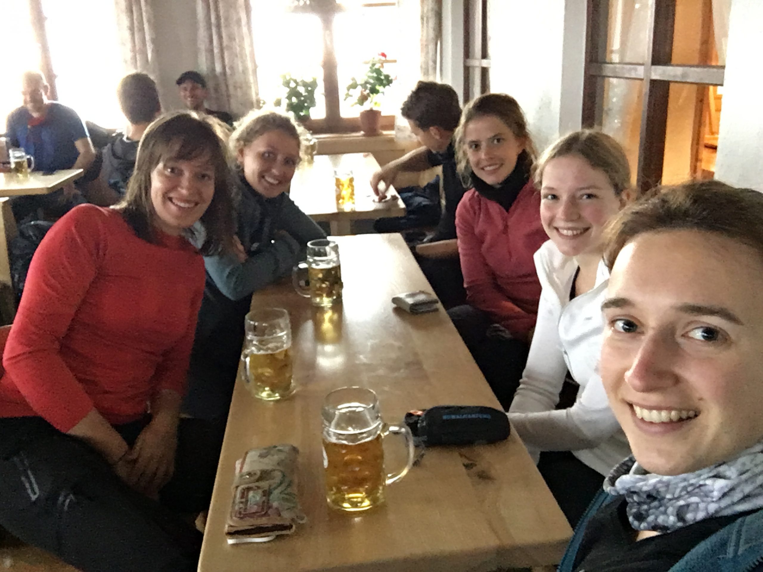 Ein Teil der Gruppe ist am Leeberghöhenweg auch zum Riederstein (1207 m) abgebogen und kommt dementsprechend wenige Minuten später im Brauhaus dazu.
