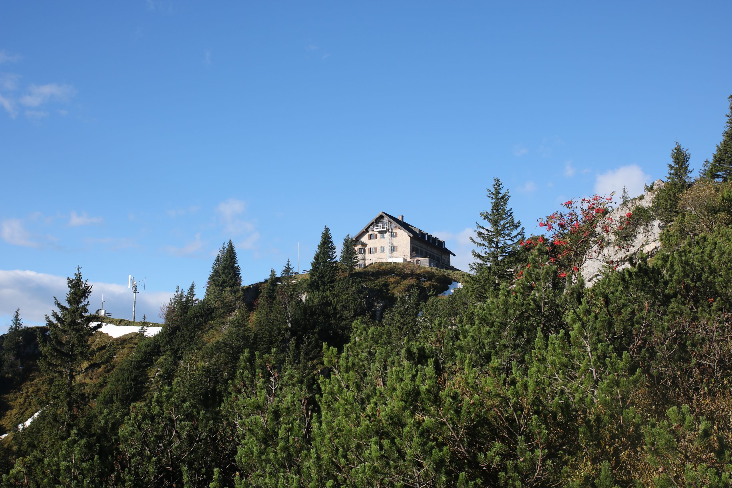 Wir treffen uns nach langer Anreise mit den öffentlichen Verkehrsmitteln am gut angebundenen Treffpunkt Spitzingsattel, wo auch einige Vorabendanreisende bereits in der gemütlichen Spitzingalm (1127 m) auf uns warten.