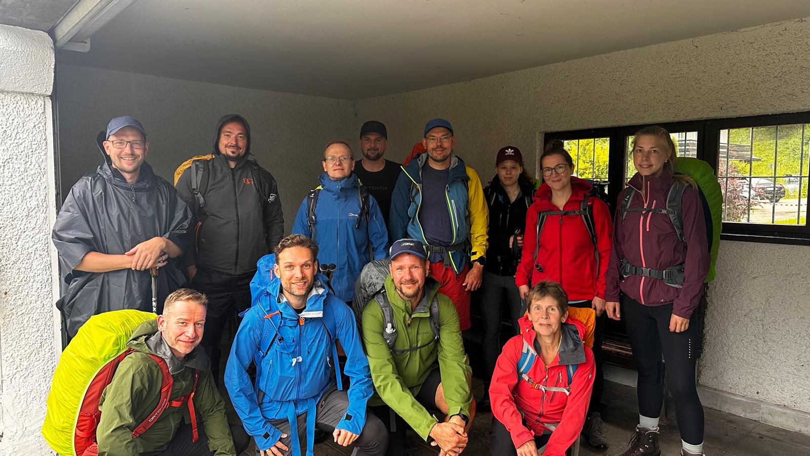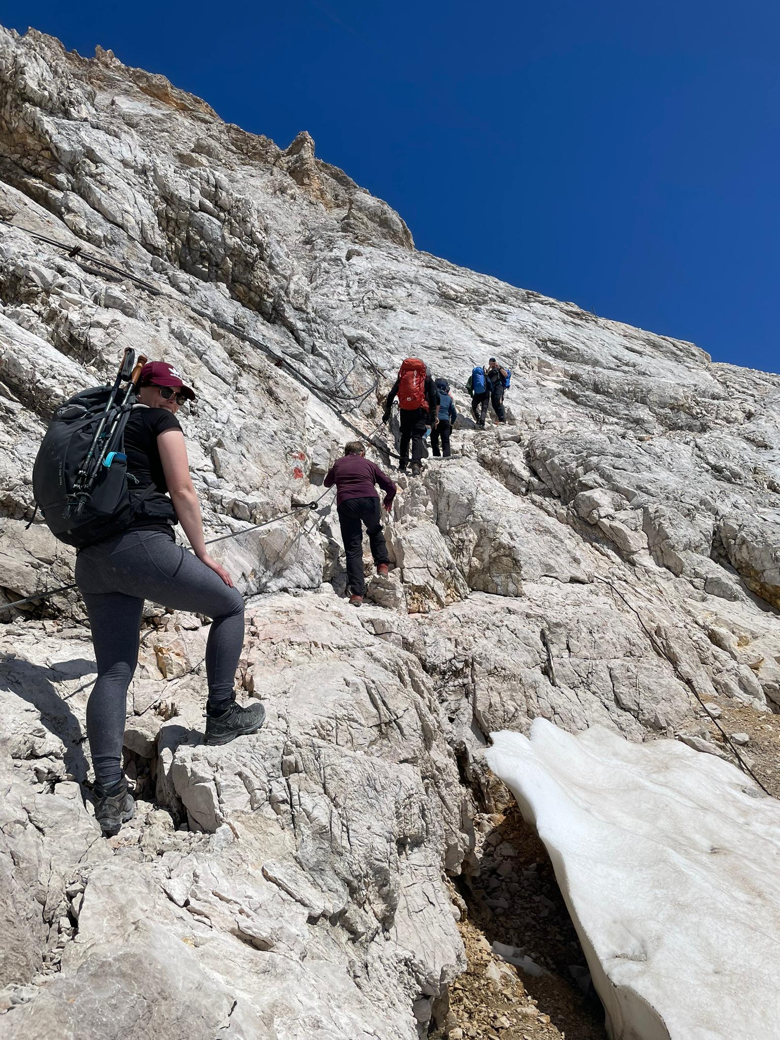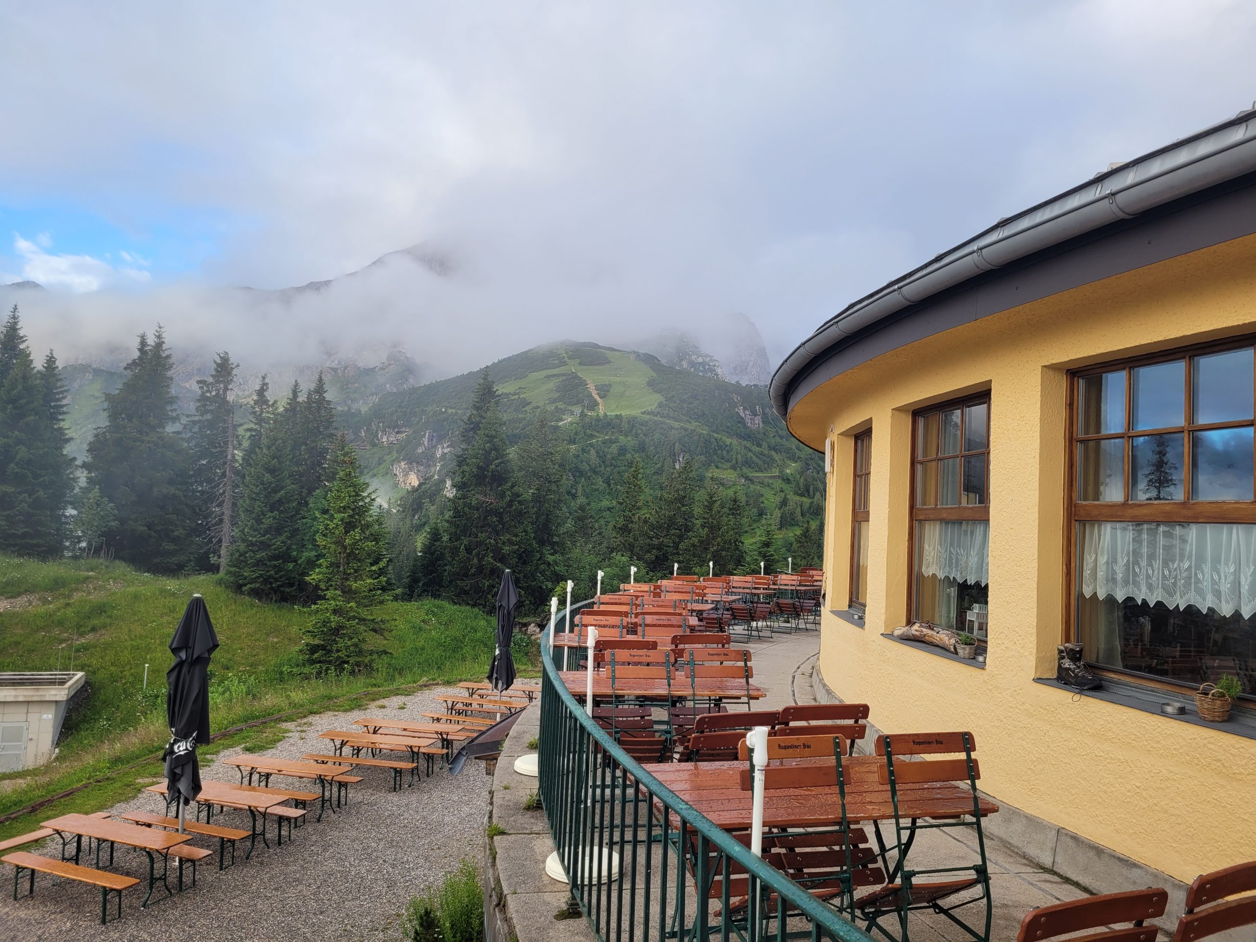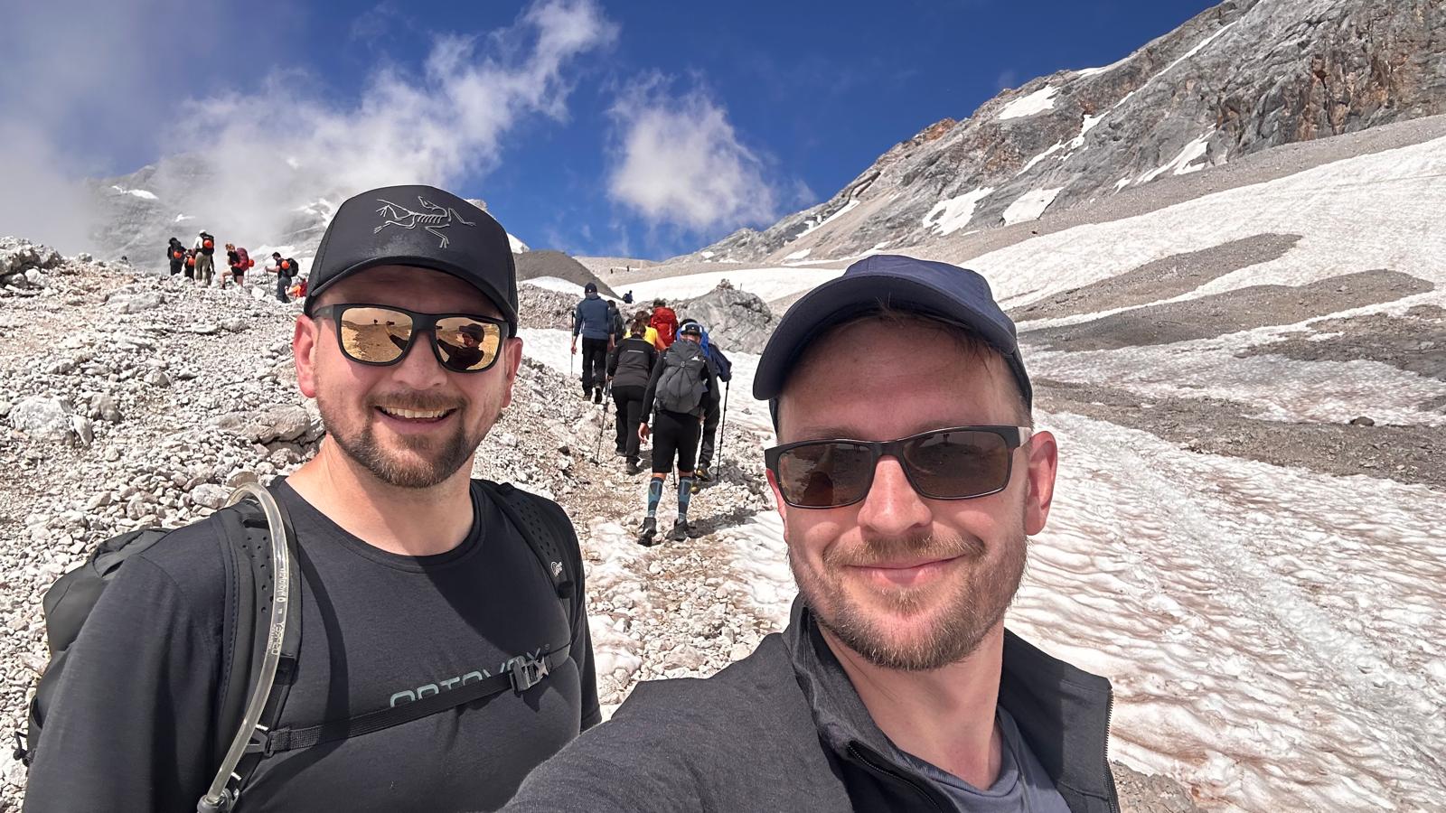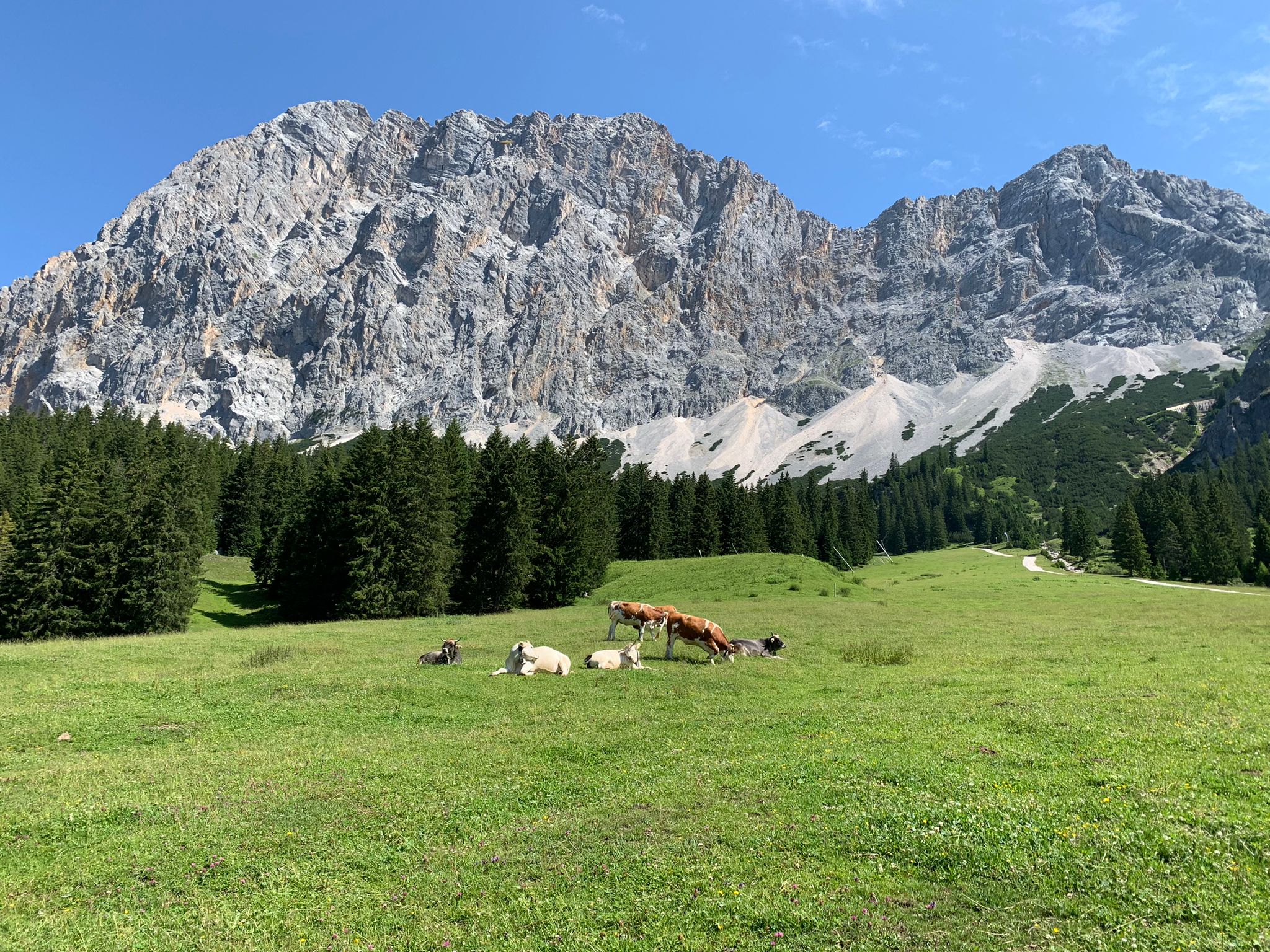 Nach der Gruppenerwärmung starten wir unsere Tour über das Gatterl und haben noch einmal richtig gutes Wetter erwischt. Wir kehren noch kurz am Tirolerhaus ein, bevor es dann mit Seilbahn und später mit der Eisenbahn zurück zum Ausgangspunkt in Garmisch-Partenkirchen geht.